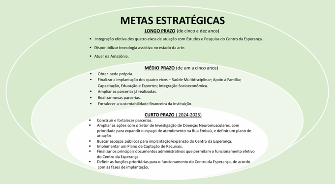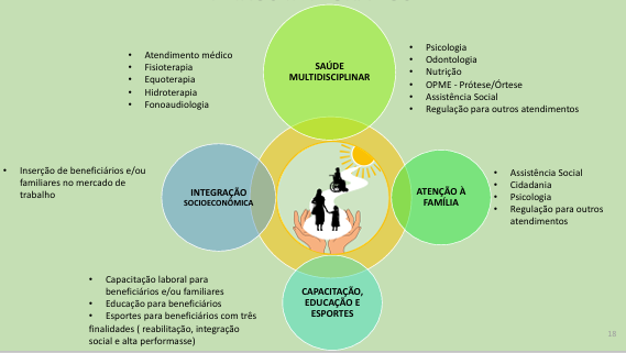 A Associação tem por finalidades sociais a atenção ampla e irrestrita às Pessoas com Deficiência (PcD), seus familiares e afins, e o desenvolvimento de programas de saúde, reabilitação social, econômico, psicológico, cultural, artístico, educativo, formativo e de capacitação laboral.